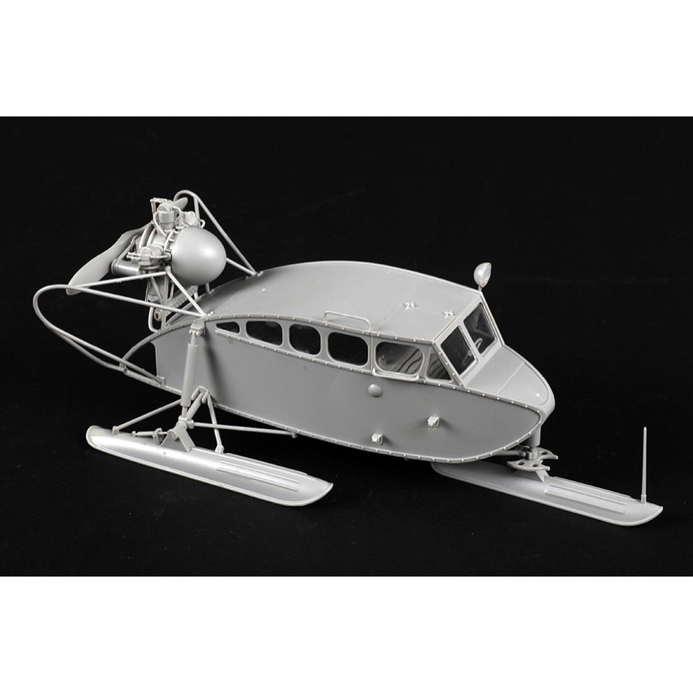 Unleash the spirit of the Winter War and World War II with the Trumpeter 02355 1/35 scale model kit of the classic Soviet NKL-6 Aerosan. Historically, these propeller-driven, ski-mounted snowmobiles were vital transport vehicles for the Red Army, performing crucial reconnaissance, communication, and medical aid tasks across the frozen, challenging terrain of the Eastern Front. This highly sought-after 1:35 scale plastic kit meticulously reproduces the unique design of the unarmored NKL-6, featuring the exposed rear-mounted aircraft engine and driver/passenger cockpit. Containing over 80 newly tooled parts, the model achieves a high level of fidelity in its intricate detail, including a sheet of essential photo-etched (PE) parts to enhance the realism of smaller components. Perfect for military and historical diorama builders, this Soviet Aerosan model offers a unique and intriguing subject for any WWII military vehicle collection.
