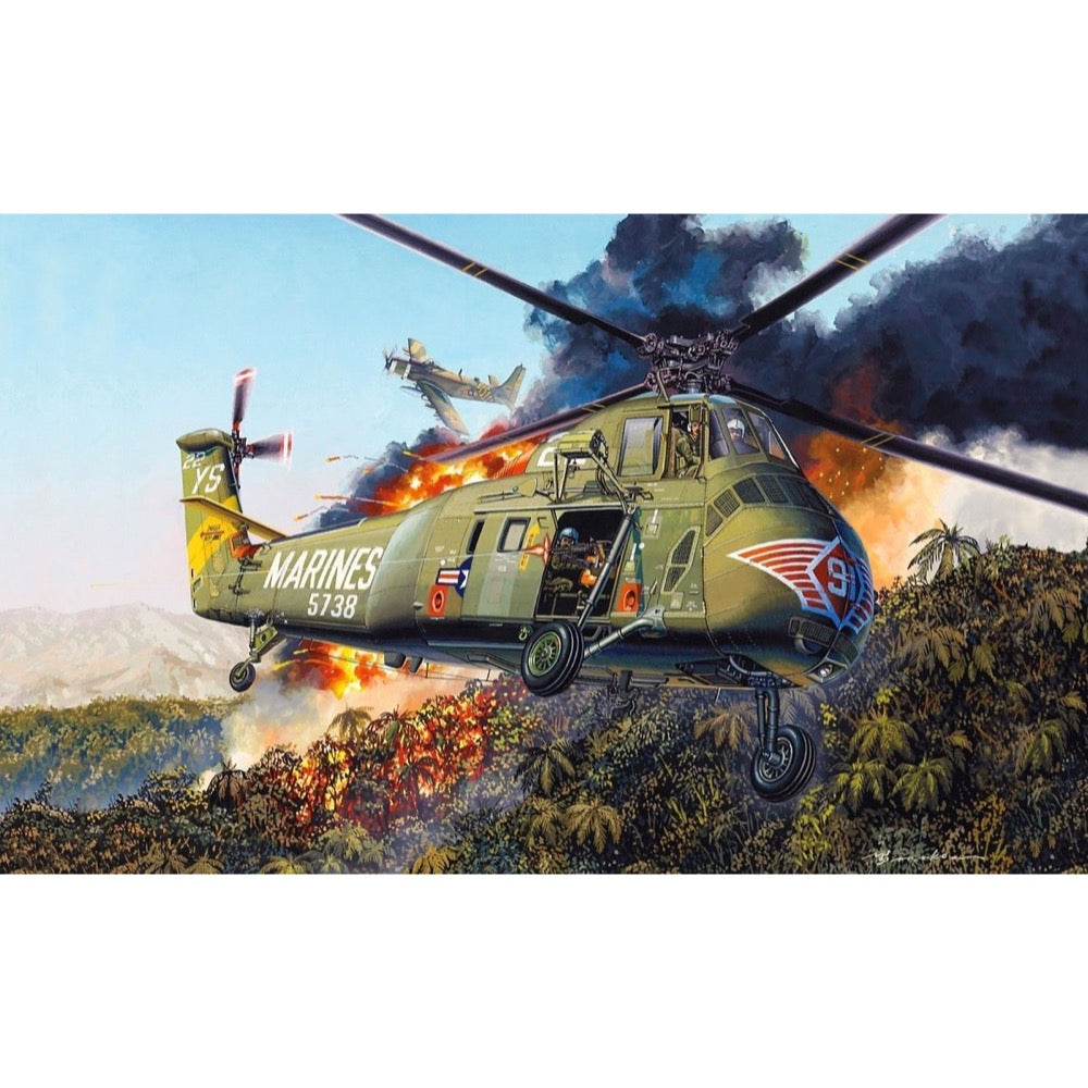 The Sikorsky H-34 is a piston-engined military helicopter originally designed by American aircraft manufacturer Sikorsky as an anti-submarine warfare (ASW) aircraft for the United States Navy. Served mostly as medium transports, on every continent with the armed forces of 25 countries. It saw combat in Algeria, the Dominican Republic, Nicaragua, and throughout Southeast Asia. Other uses included saving flood victims, recovering astronauts, fighting fires, and carrying presidents. Kit consist of 320+ parts, 12 sprues, 16 clear parts, detailed cockpit and cabin interior, engraved panel lines, photoetch, decals and markings.