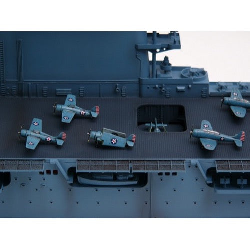 • Either waterline version or full hull version can be selected; Include 4 F4Fs of VF-2, 6 SBDs of VB-2& VS-2, 3 TBDs of VT-2, total 3 types 13 a/c with clear canopy, folding wings.