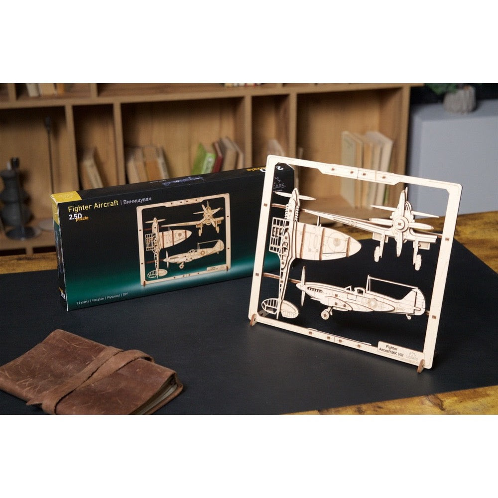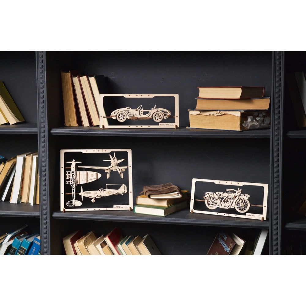 Lovers of classic puzzles and jigsaw puzzles usually have to purchase a separate frame if they want to preserve and display their work. With Ugears 2.5D picture puzzles you don't need to glue your puzzle to a base or find a display frame. Your Fighter Aircraft comes in its own frame, with included leg stands and a picture mount—just assemble and place or hang your aircraft puzzle wherever you want!