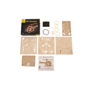 With 167 parts this is an easy model to build, but exceptional Ugears design means this DIY toy chopper still has that "Wow!" factor. To build your model just punch the pieces out of the art-quality composite wood boards and snap them together following the included illustrated instructions. Be sure to sand and lubricate all moving parts with the included piece of sandpaper and wax, and "develop" moving parts with multiple runs before final assembly, for optimal Mini Helicopter function.