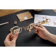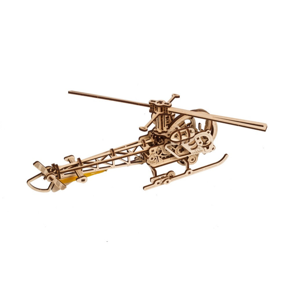 The Ugears Mini Helicopter is the first helicopter model in our Smart collection, joining the Mini Biplane, Mad Hornet, Steampunk Airship and Aviator (with interchangeable airplane and helicopter components) models in our Ugears family of fabulous flyers. The open design lets you really see all aspects of the DIY helicopter model. This 3D puzzle whirlybird is loaded with realistic details including a turning rotor mast and main rotor, turning tail rotor, twin seater cockpit with cyclic stick controls, doors that open, adjustable searchlight in front, retractable rear wheels, landing skids and a helipad on which to rest your model.
