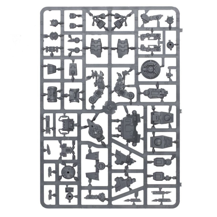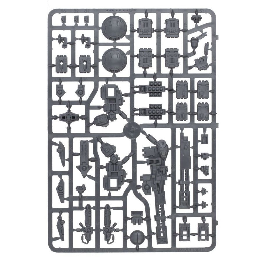 This multi-part plastic kit contains 91 components and a T'au transfer sheet with which to make a Broadside Battlesuit and two Drones.